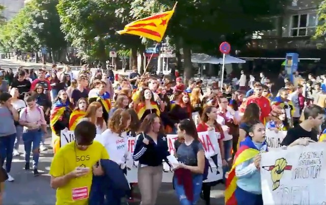 Students from the University of Lleida are seen during pro-Catalan rally at Avenue Blondel in Lleida, Spain October 26, 2017 in this picture obtained from social media. Credit: Reuters