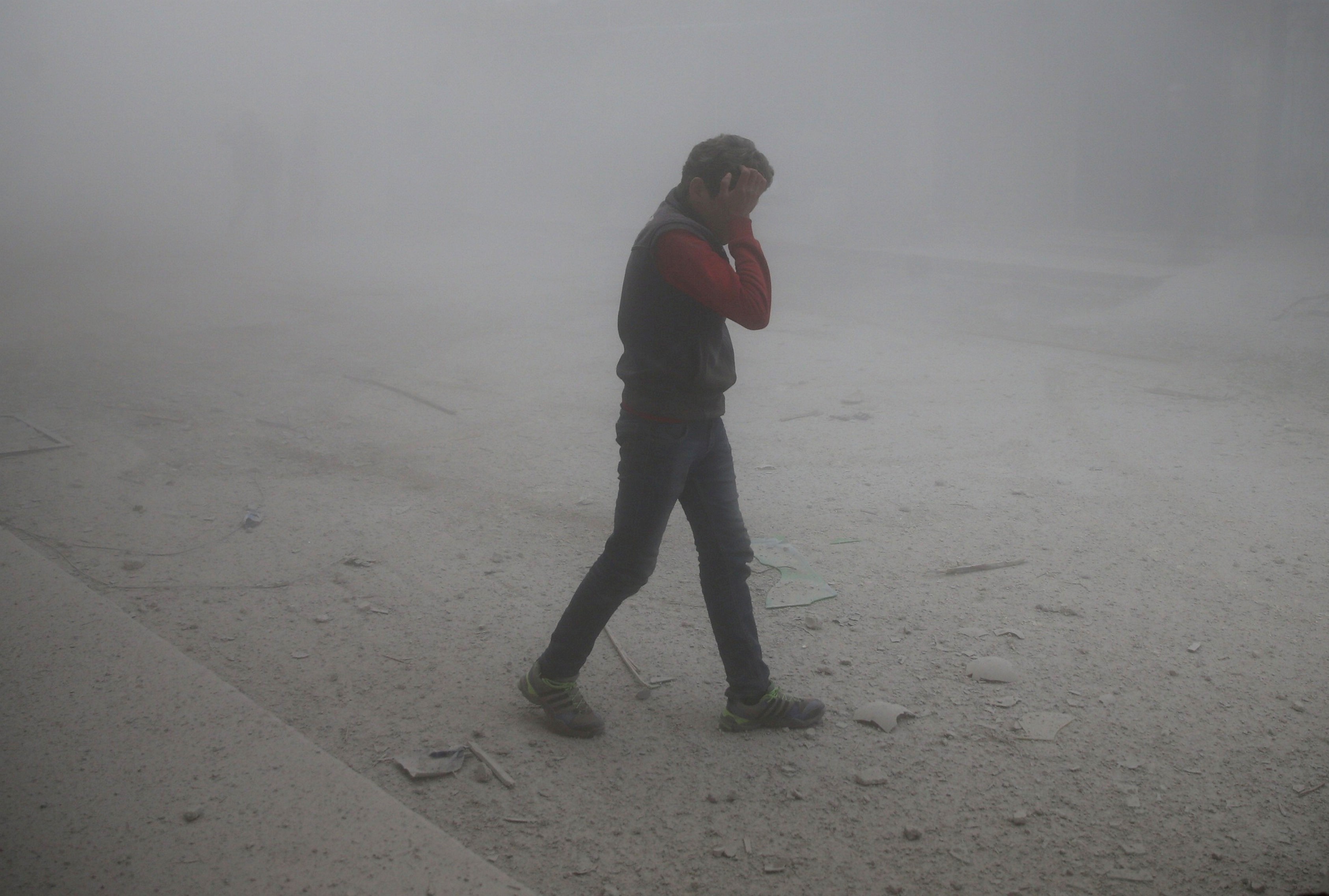 A boy is seen during shelling in the town of Hamoria, eastern Ghouta in Damascus, Syria, December 3, 2017. Credit: Reuters/Bassam Khabieh