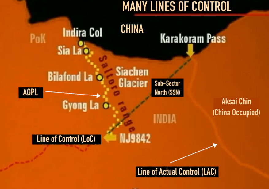 India contends that the line runs further northwards, placing the Siachen glacier firmly in Indian territory. That line beyond NJ9842 is called the Actual Ground Position Line (AGPL). But the Pakistani side claims that the line runs towards north east, connecting NJ9842 to the Karakoram Pass. That would place the Siachen glacier inside Pakistani control, and physically link Pakistan and China.
