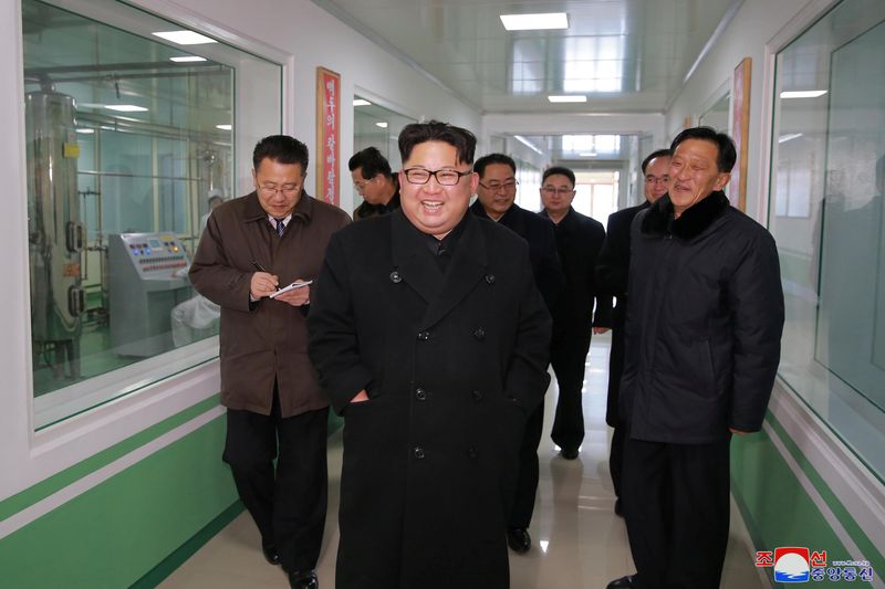 North Korean leader Kim Jong Un gives field guidance at the Pyongyang Pharmaceutical Factory, in this undated photo released by North Korea's Korean Central News Agency (KCNA) in Pyongyang January 25, 2018. Credit: Reuters/KCNA
