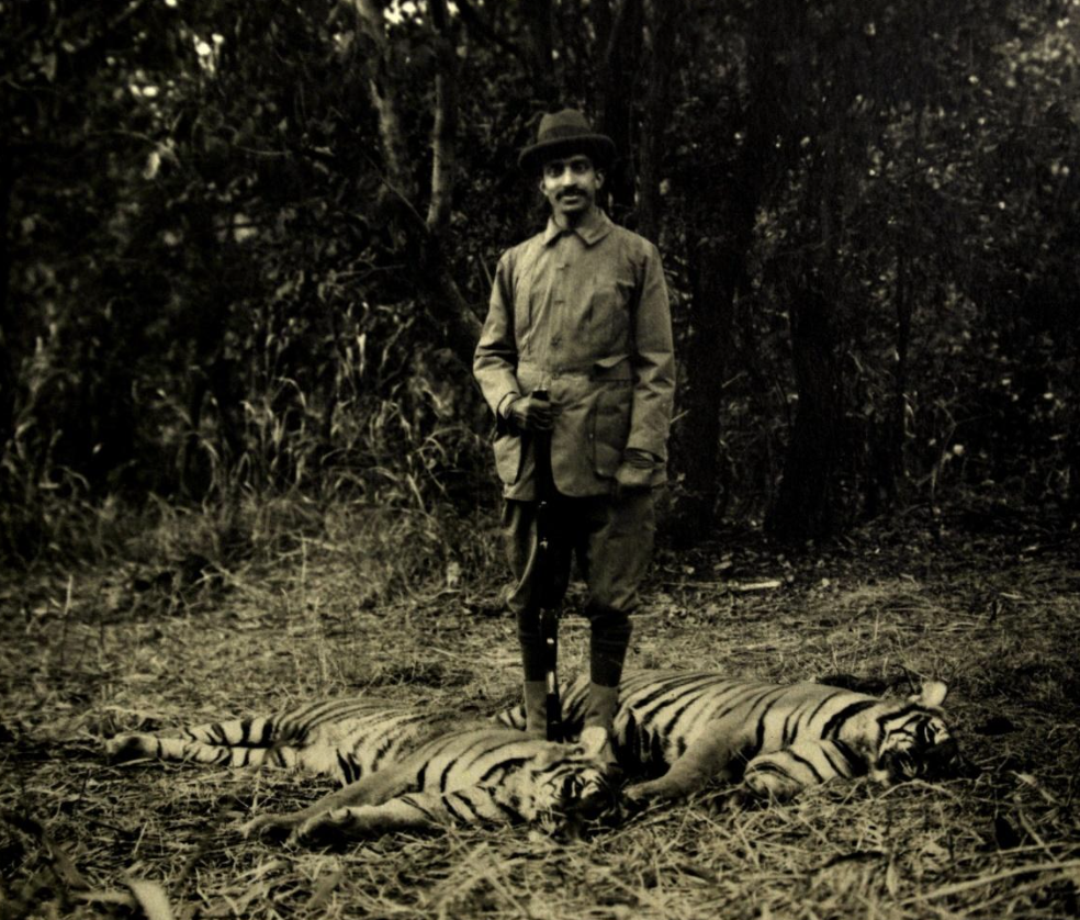 Maharaja Tukoji Rao Holkar -III hunting photograph at Barwaha jungle by Ramchandra Rao, Pratap Rao, circa 1915. From the collection of Zafar Ansari, Museum of Indore.