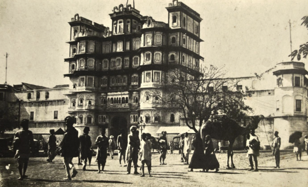 Principal residence of Holkar dynasty the Royal Palace of Indore Rajwada photograph taken by Ramchandra Rao, Pratap Rao in the year 1905. From the collection of Zafar Ansari Museum of Indore