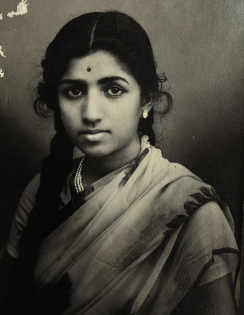 Lata Mangeshkar’s first photograph session at Indore by Ramchandra Rao Pratap Rao. From the collection of Zafar Ansari Museum of Indore