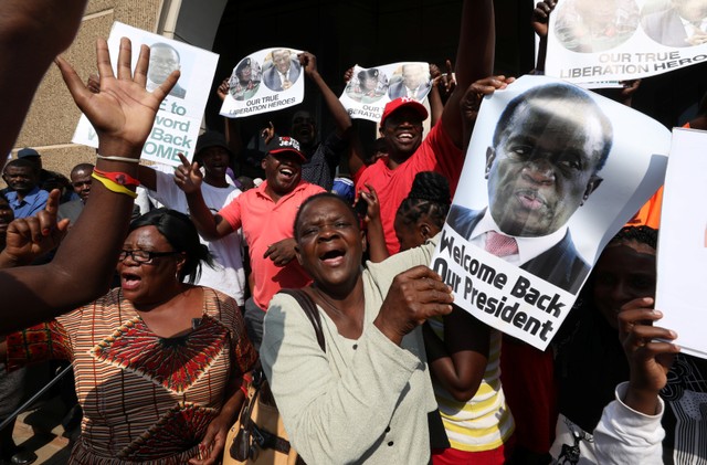 Supporters of Zimbabwe's former vice president Emmerson Mnangagwa await his arrival in Harare, Zimbabwe, November 22, 2017. Credit: Reuters/Mike Hutchings