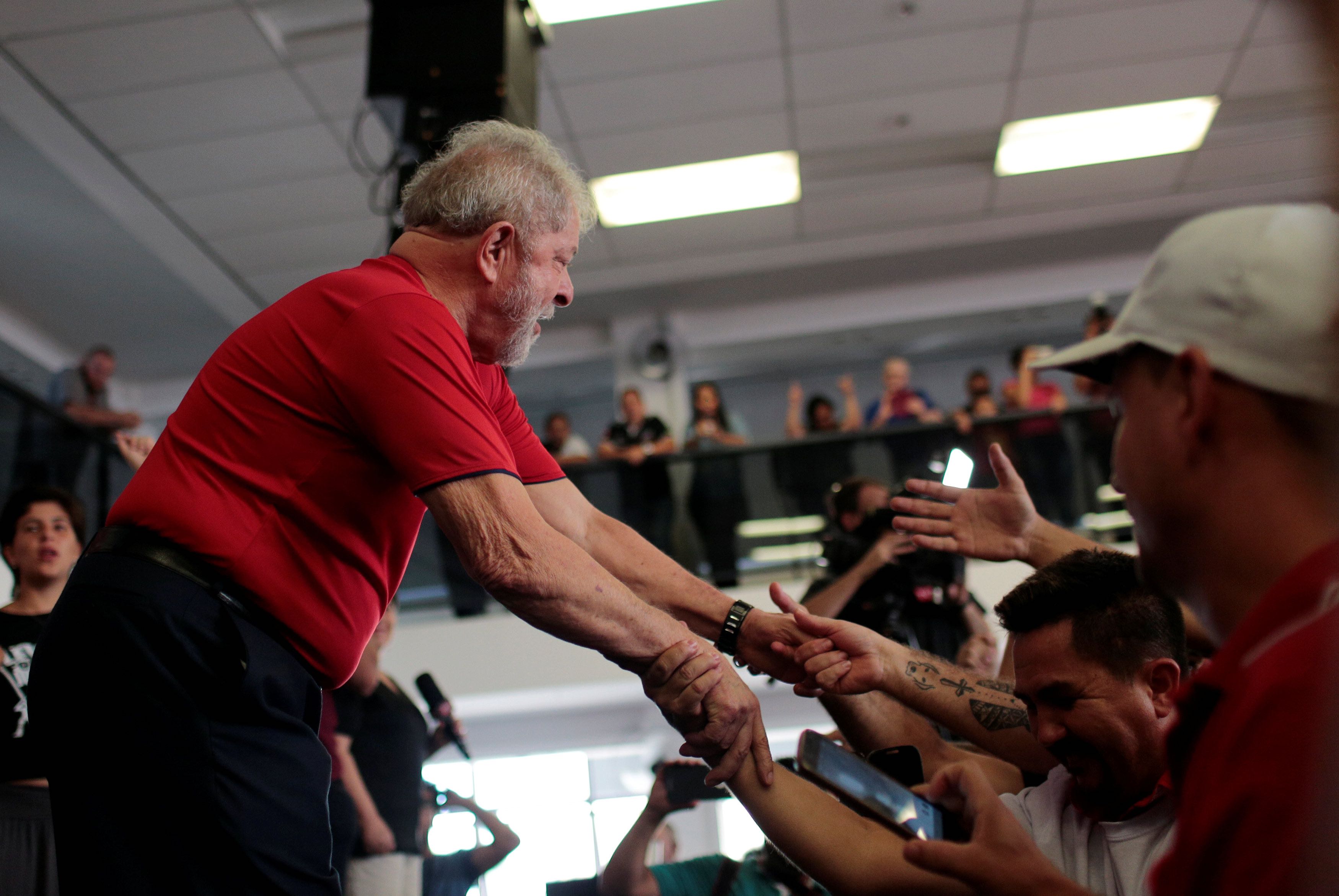 Former Brazilian President Luiz Inacio Lula da Silva speaks at the metallurgical trade union while the Brazilian court decides on his appeal against a corruption conviction that could bar him from running in the 2018 presidential race, in Sao Bernardo do Campo, Brazil January 24, 2018. Credit: Reuters/Leonardo Benassatto