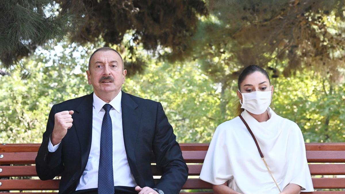 Azerbaijan's President Ilham Aliyev and his wife Mehriban visit the Central Military Clinical Hospital of the Defence Ministry to meet with Azeri service members wounded during clashes in Baku, Azerbaijan September 30, 2020. Photo: Official website of President of Azerbaijan/Handout via REUTERS