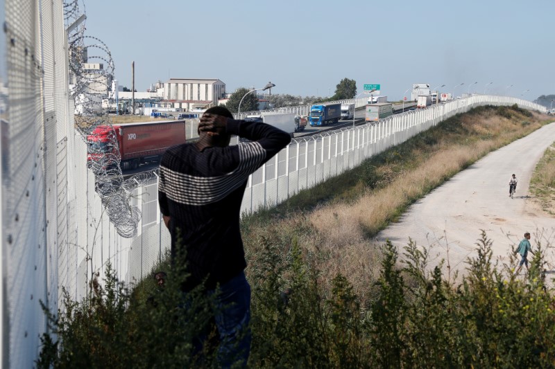Migrant walks past the fence which secures the approach to the city from migrants trying to reach Britain, in Calais, France, September 21, 2016. Credit: Reuters/Pascal Rossignol/Files