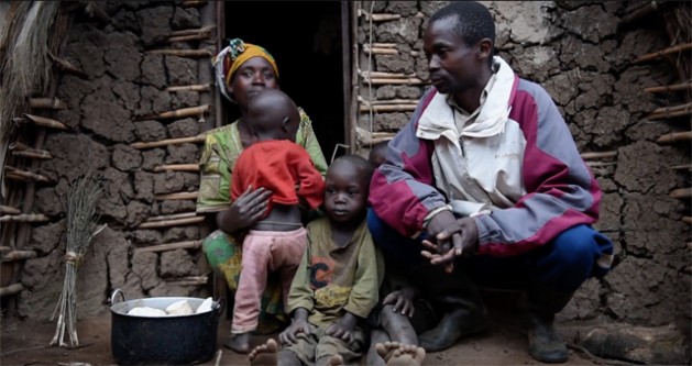 Saidi Olivier, a displaced farmer in North Kivu, Democratic Republic of the Congo with his family in an IDP camp. Credit: IDMC