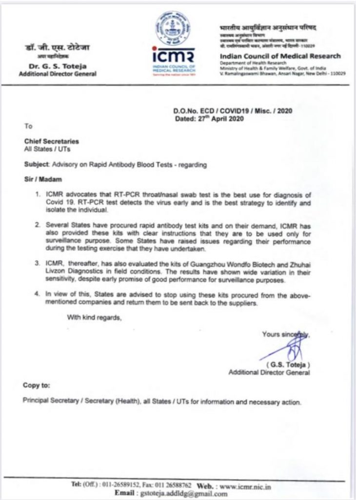 On April 27, a day after the court order, Prime Minister Narendra Modi reportedly held a meeting with the ICMR chief Balaram Bhargava following which all kit procurement orders from China were cancelled and a decision was taken to withdraw them from use.