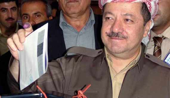 File photo of Kurdish leader Massoud Barzani voting in Iraq's constitutional referendum in the northern city of Arbil October 15, 2005. Credit: Reuters