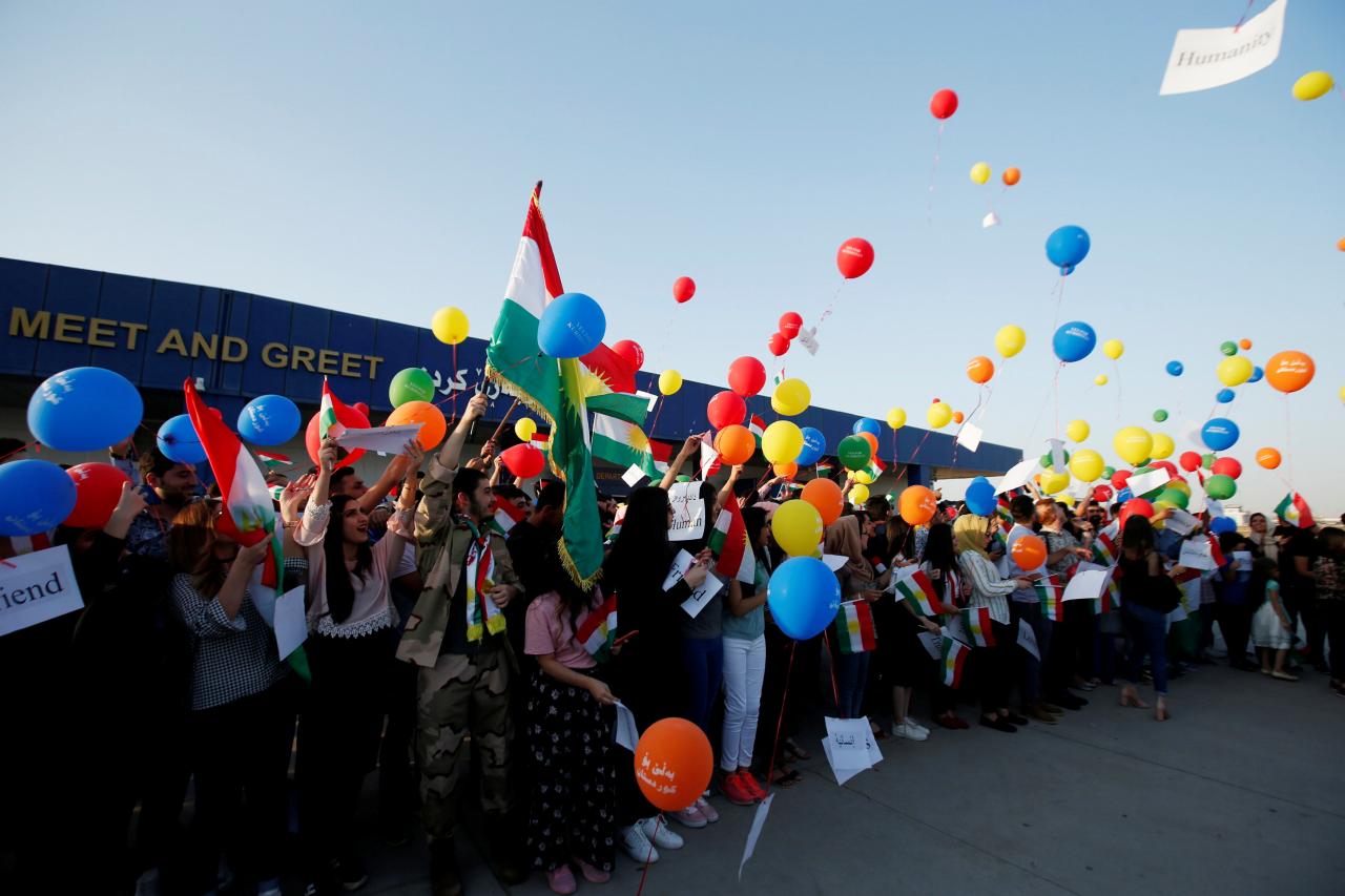 Kurdish people protest outside the Erbil International Airport in Erbil, Iraq September 29, 2017. Credit: Reuters