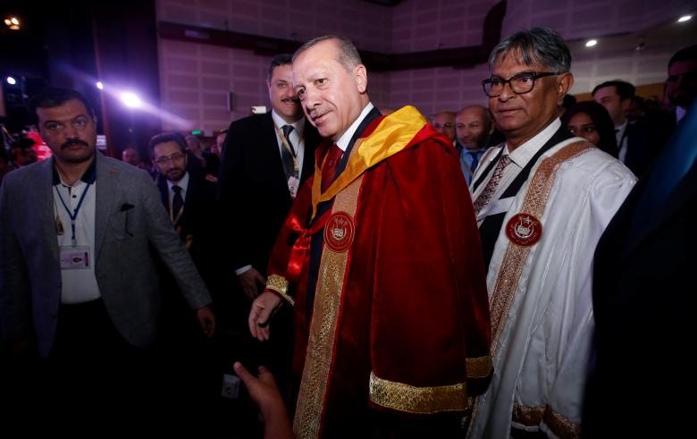 Turkish President Tayyip Erdogan arrives at a convocation at Jamia Millia Islamia University in New Delhi, India, May 1, 2017. Credit: Reuters/Adnan Abidi