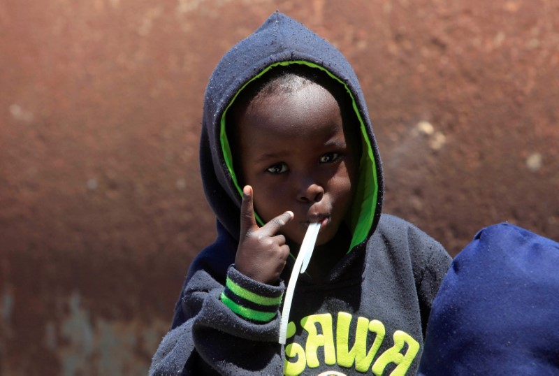 An illegal migrant boy gestures at Gasr Garabulli port after he was rescued by Libyan Coast Guard, east of Tripoli, Libya, May 18, 2017. Credit: Reuters/Ismail Zitouny