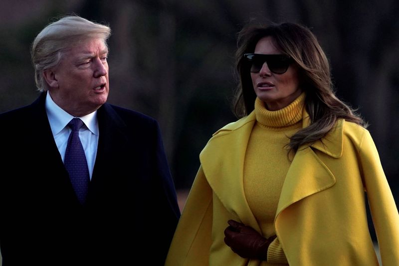 US President Donald Trump and first lady Melania Trump walk on South Lawn of the White House upon their return to Washington, US, from Cincinnati, February 5, 2018. Credit: Reuters/Yuri Gripas
