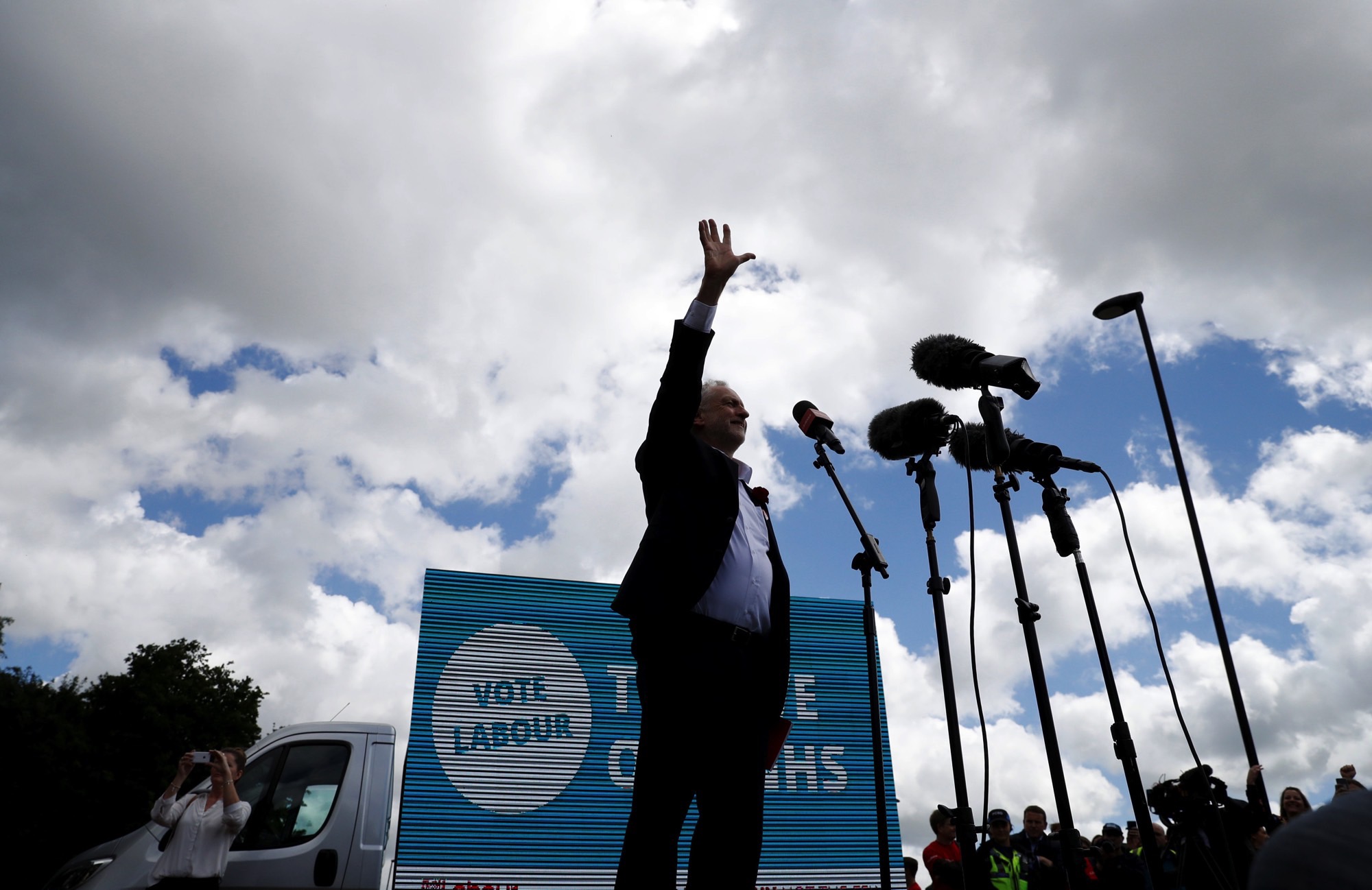 Britain's opposition Labour Party leader, Jeremy Corbyn, waves after addressing an election rally in Runcorn, Britain June 7, 2017. Credit: Reuters/Phil Noble