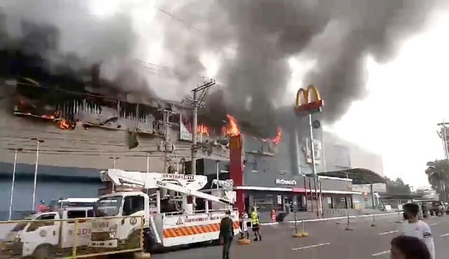 Smoke rises from burning mall's 3rd floor, in Davao City, Philippines, in this December 23, 2017. Credit: Picture obtained from social media, courtesy Otto van Dacula via Reuters