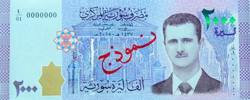A portrait of Syria's President Bashar al-Assad is seen printed on the new Syrian 2000 pound banknote that went into circulation on Sunday, in this handout picture provided by SANA on July 2, 2017, Syria. Credit: SANA/Handout via Reuters