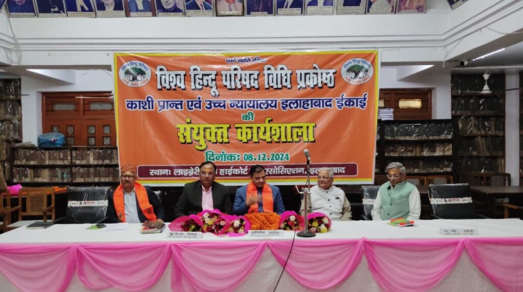 The members of the VHP’s Kashi Prant legal cell from Jaunpur, Sultanpur, Pratapgarh, Amethi, Prayagraj, Kaushambi, Bhadohi, Mirzapur, Chandauli, Sonbhadra, Ghazipur and Varanasi attended the gathering.