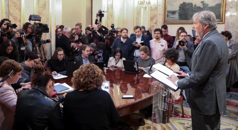 Spanish government spokesperson Inigo Mendez de Vigo makes a statement regarding the situation in Catalonia in Madrid, October 19, 2017. REUTERS/Sergio Perez