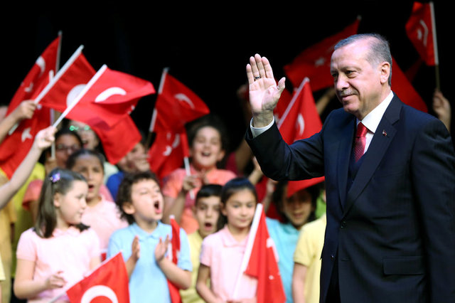 Turkish President Tayyip Erdogan waves during a ceremony to mark the National Sovereignty and Children's Day at the Presidential Palace in Ankara, Turkey, April 23, 2017. Credit: Reuters/Murat Cetinmuhurdar/Presidential Palace
