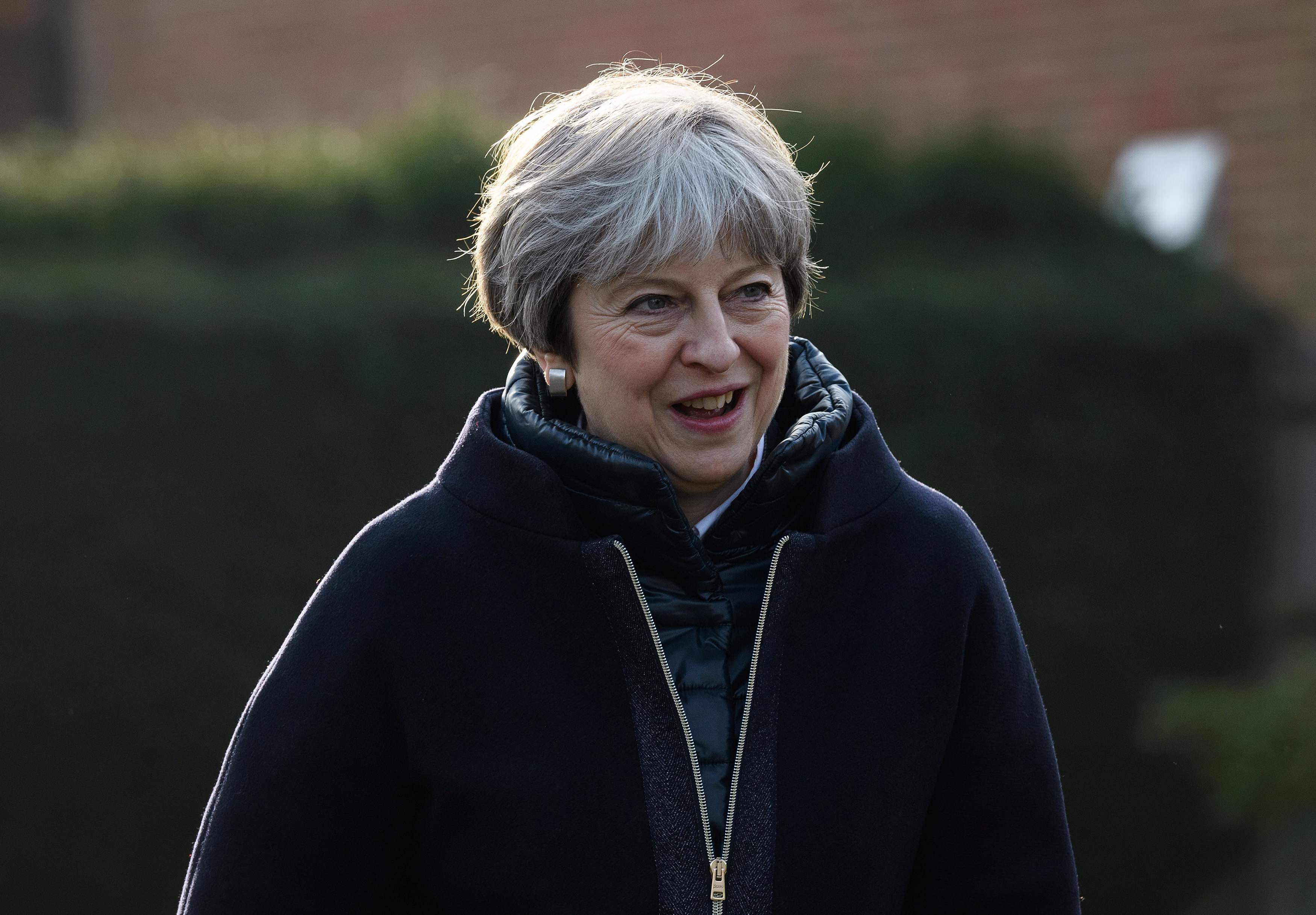 Britain's Prime Minister, Theresa May, joins Sutton and Cheam Member of Parliament, Paul Scully, as he campaigns for the forthcoming London local elections, in south west London, Britain January 13, 2018. Credit: Reuters/Leon Neal/Pool
