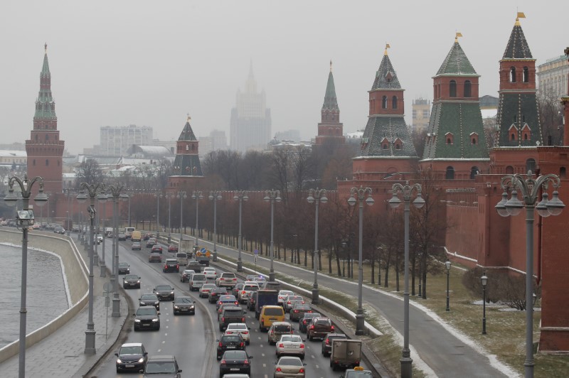 Vehicles drive past the wall and towers of the Kremlin in central Moscow, Russia November 29, 2017. Credit: Reuters/Maxim Shemetov