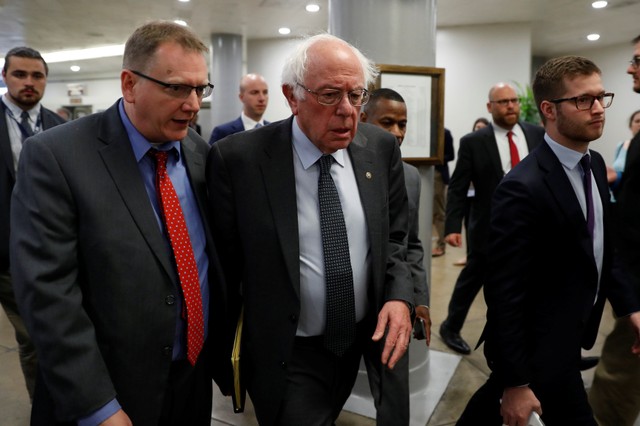 Senator Bernie Sanders walks to the Senate floor ahead of votes. December 6, 2017. Credit: Reuters/Aaron P. Bernstein