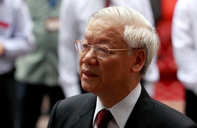 FILE PHOTO: Vietnam's general secretary of the Communist Party and national assembly chairman Nguyen Phu Trong talks to media after he casts his vote for members of the 14th National Assembly and People's Councils at a polling station in Hanoi, Vietnam, May 22, 2016. Credit: Reuters/Kham/Files