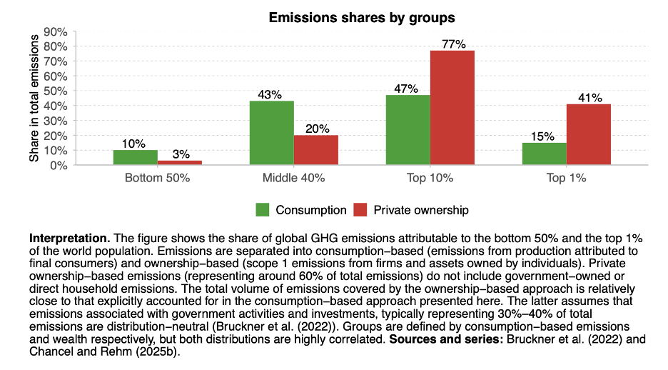 The poorer 50% of the world accounts for just 3% of carbon emissions associated with private capital ownership, while the top 10% account for 77% of such emissions, the report notes. However, when it comes to bearing the brunt of climate change-associated costs and risks, the wealthy are able to insulate themselves to a degree.