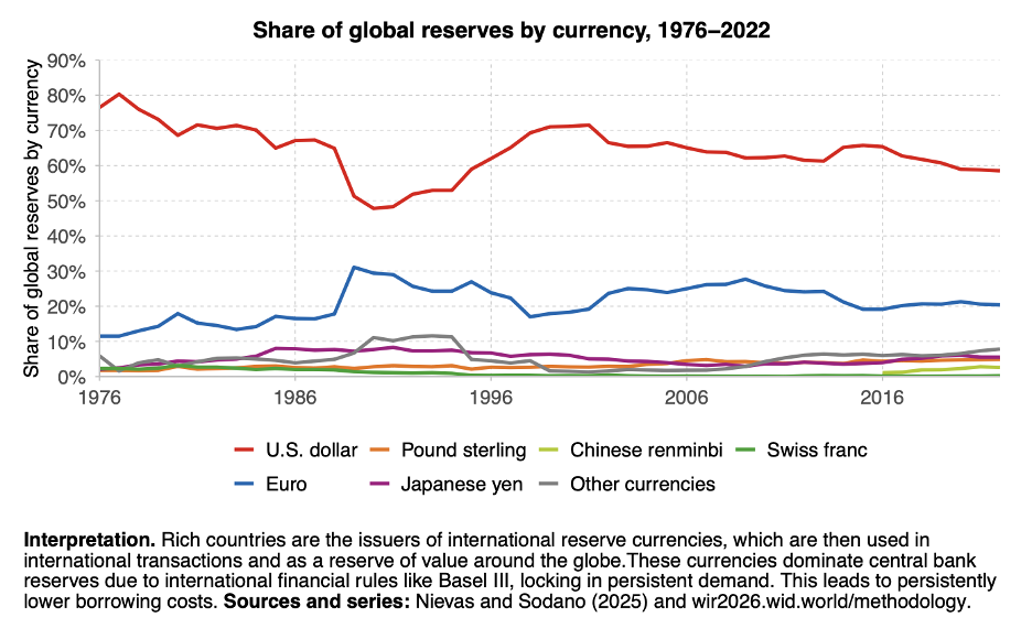It’s not “market efficiency” that is creating this situation, the report notes, but “institutional design that places reserve currency issuers and financial centers at the core of the international financial system, to the benefit of wealthy economies”.