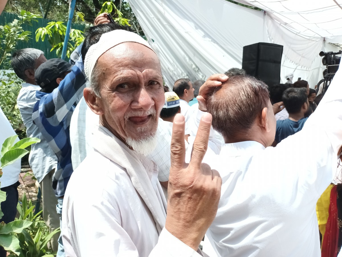 Dilshad Khan was part of Saturday's public gathering at AAP's head office in Delhi. Photo: Abhishek Dey.