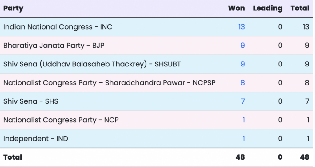 BJP and its allies which commanded 41 out of 48 seats from the state in the outgoing Lok Sabha, fell to just 17 in the face of a combative Shiv Sena (Uddhav Bal Thackeray), Sharad Pawar's Nationalist Congress Party and the Congress, which fought unitedly and with tact.