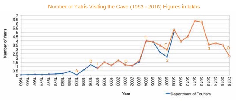 Source: Amarnath Yatra: A Militarised Pilgrimage, data from SASB.