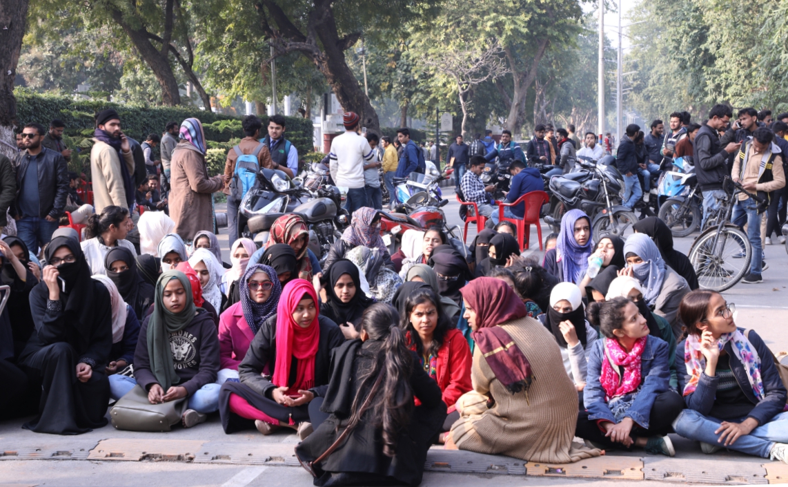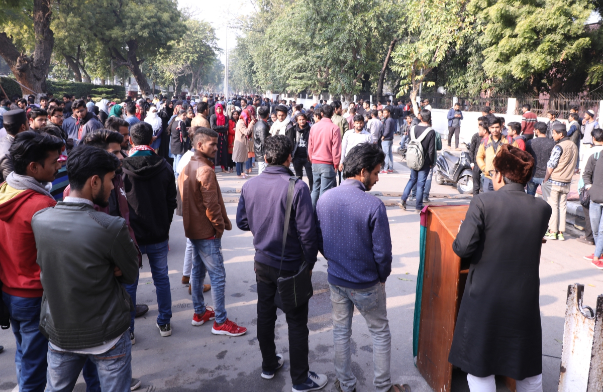 Protests against sedition charges in AMU. Credit: Devi Dutt