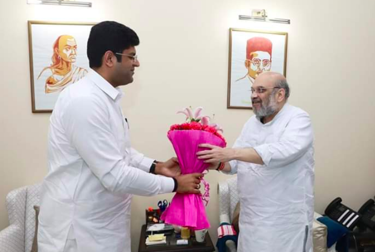 JJP chief Dushyant Chautala and BJP's former president Amit Shah. Photo: Twitter/@Dchautala