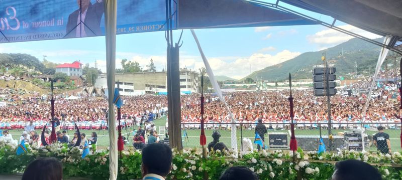 Upon his emotional arrival in Ukhrul on Wednesday (October 22), he was received at the Tangkhul Naga Long Ground by thousands who had waited since dawn, many waving church flags and portraits of past Naga leaders in what was described as a "spiritual and historical reunion".