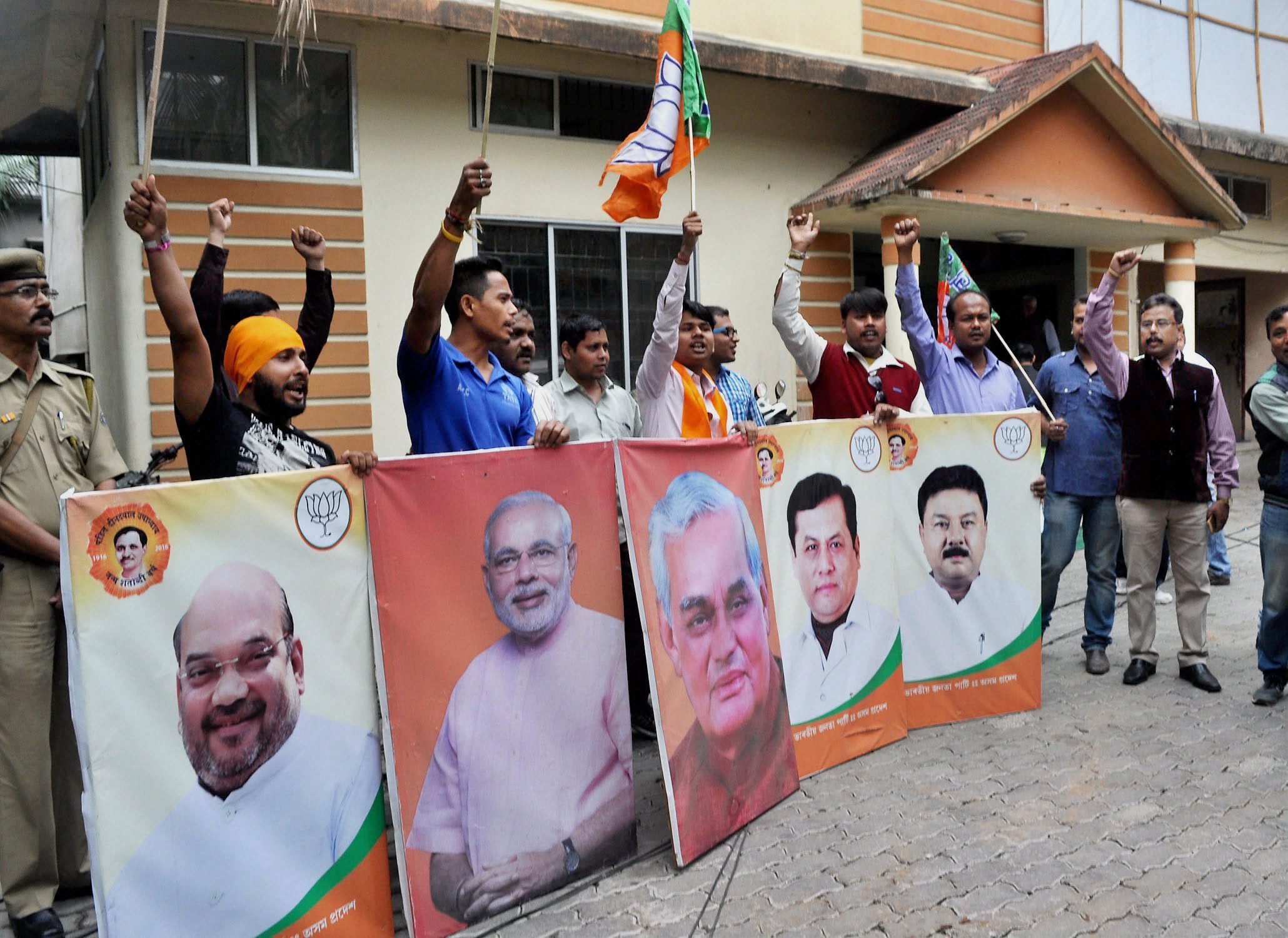File photo of BJP workers in Guwahati, Assam. Photo: PTI.