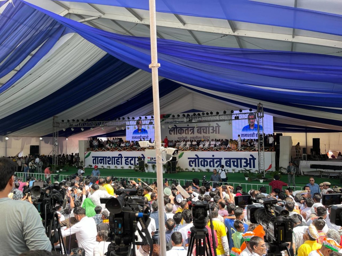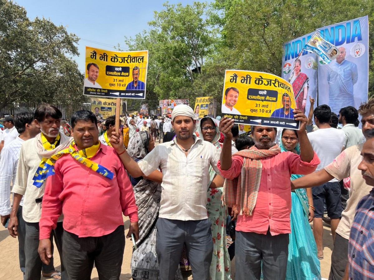 New Delhi: Nine months after the opposition INDIA alliance started taking shape, its top leaders come together in the capital's historic Ramlila Maidan on Sunday (March 31) to protest attacks on democracy. The rally drew thousands of people, despite the fact that the Delhi Police gave only conditional permission to the Aam Aadmi Party, the primary organiser of the rally. Delhi Police barred a procession and disallowed any use of tractors and trollers.