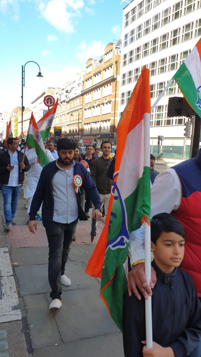A foot march held in London by the Indian Overseas Congress in October 2022 to extend support to Bharat Jodo Yatra led by Rahul Gandhi in India. Photo: Special arrangement.