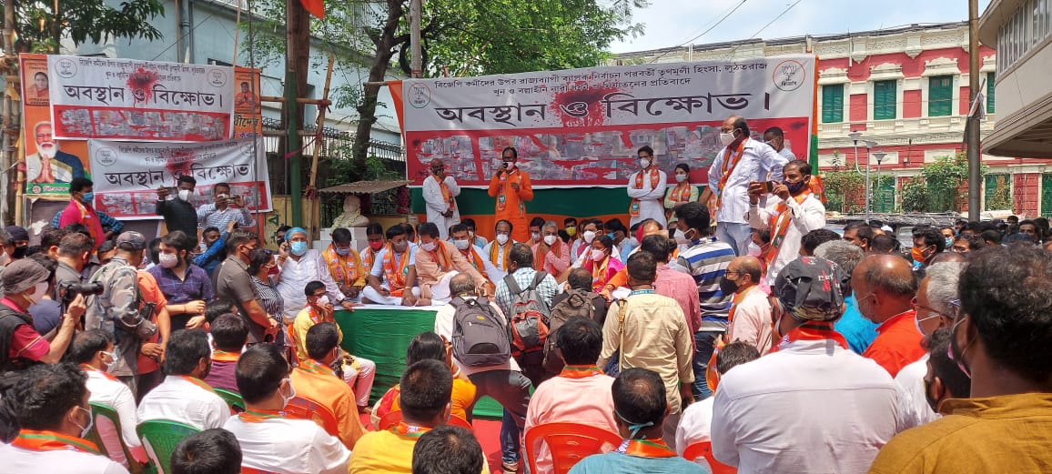 A BJP protest in front of their Kolkata headquarters, against post-poll violence. Photo: Twitter/@BJP4Bengal