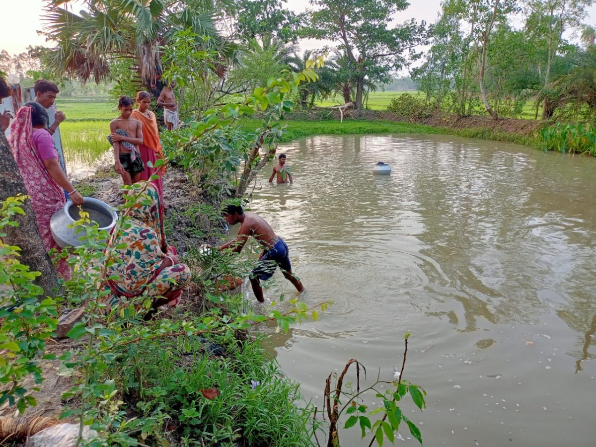 A pond belonging to Patharpratima Mandal 1 BJP president Shyamal Sardar, which was allegedly poisoned by TMC workers. Sardar is a fish farmer by profession. Photo: By arrangement
