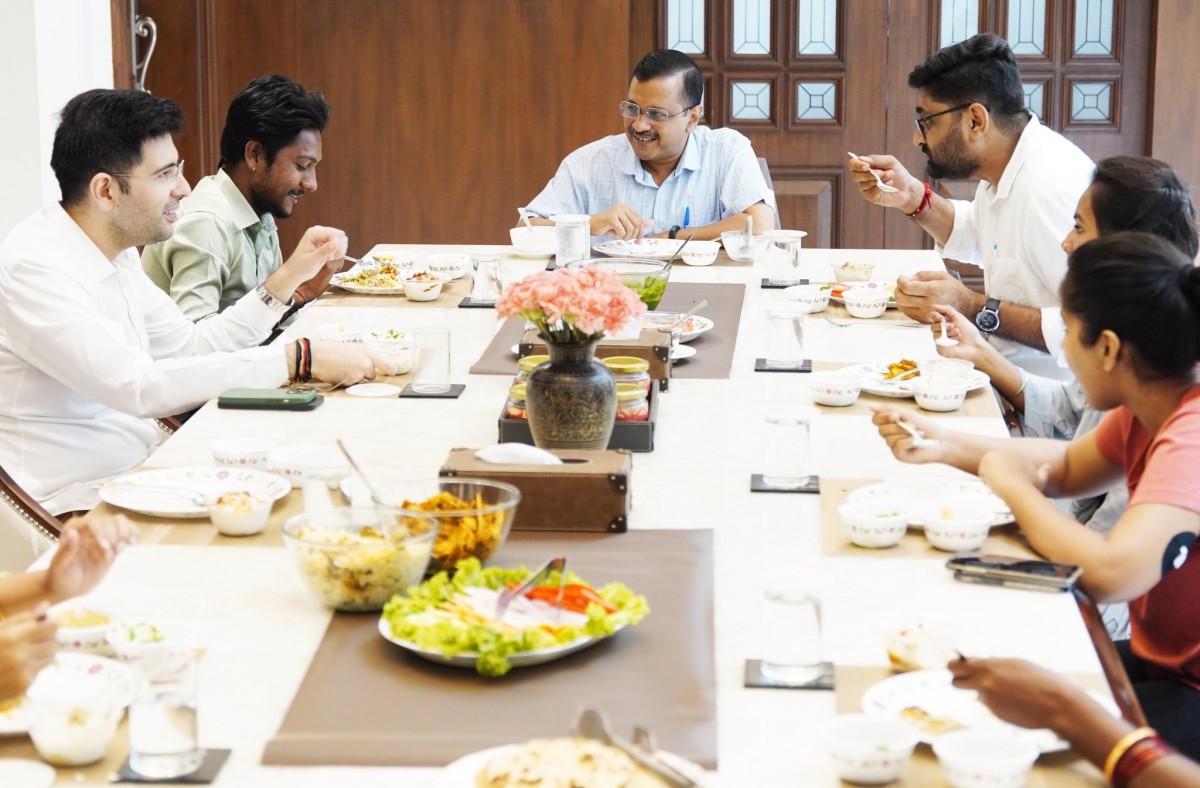 AAP convenor and Delhi chief minister Arvind Kejriwal hosts a lunch for a Gujarat sanitation worker at his Delhi residence on Tuesday, September 27. Photo: Twitter/@ArvindKejriwal.