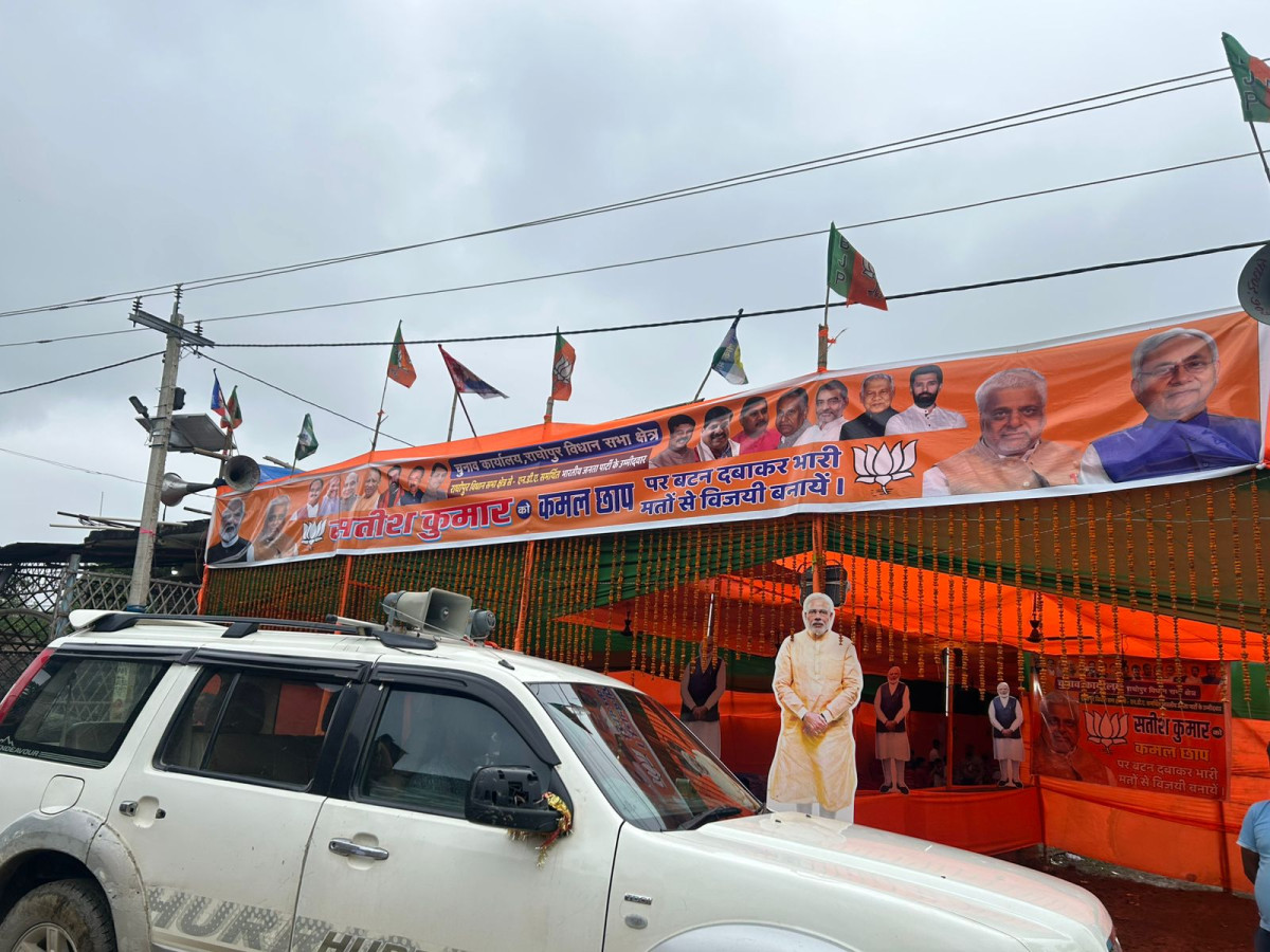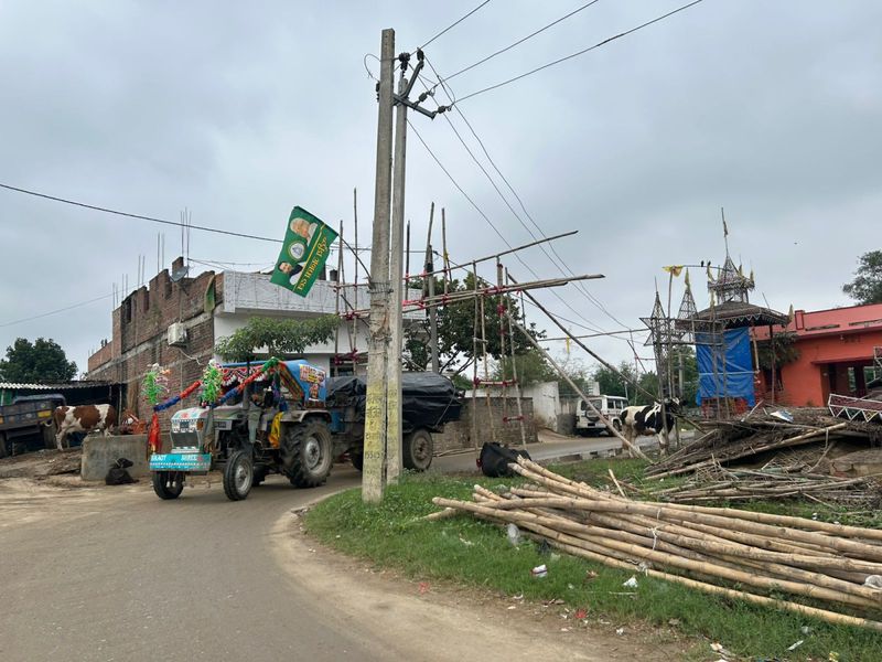 A BJP tent in Rampur Shyamchand village, Raghopur, Bihar.