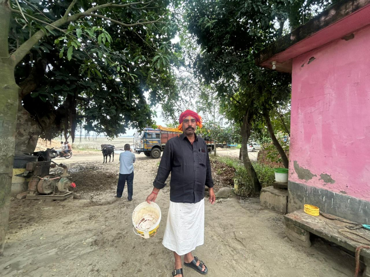 Singh has built his house on an elevated land opposite a stretch of the Ganga that now lies half dry. He points to his entrance to say that water rises and remains there for at least four months. Singh is an upper caste Rajput, considered to be a primary vote bank of the BJP. While the BJP has fielded Satish Kumar, a Yadav, Singh says he will stand with those who do work.