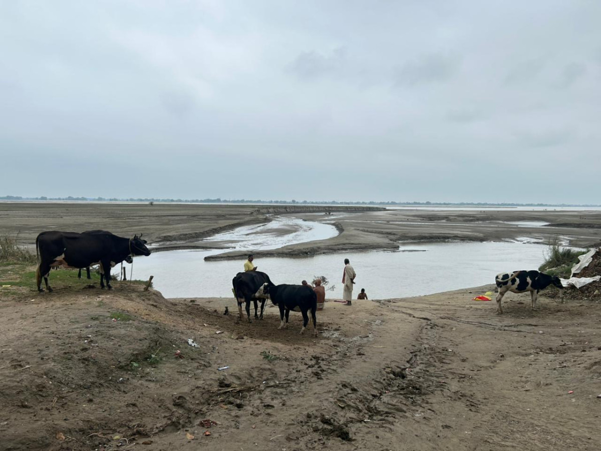 Subodh Singh's house overlooks a stretch of the Ganga that now lies half dry but water rises to inundate his village for four months a year.