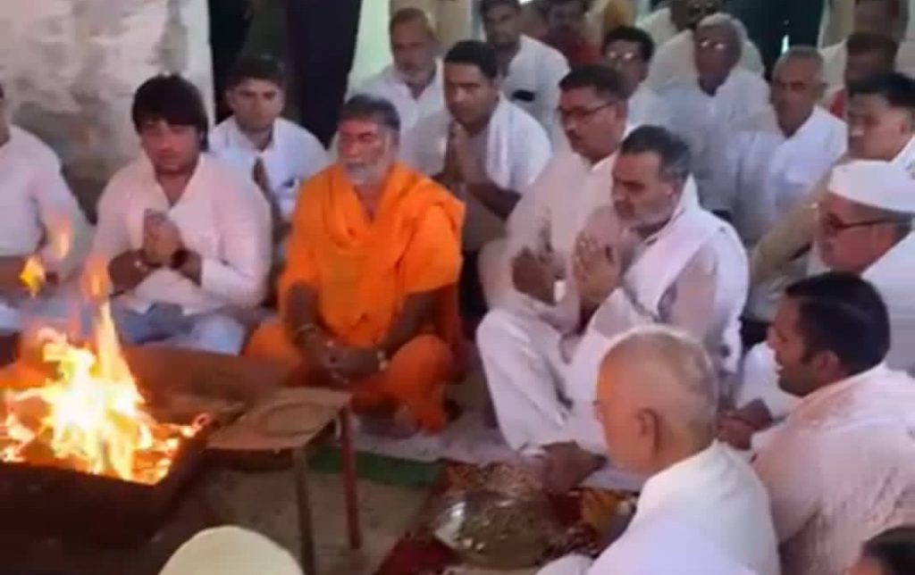 FILE IMAGE: Union minister Sanjeev Balyan attending religious rituals on the death anniversary of two Hindu Jat youth whose killings – along with the killing of a Muslim young man – had triggered riots. Photo: Twitter/@drsanjeevbalyan