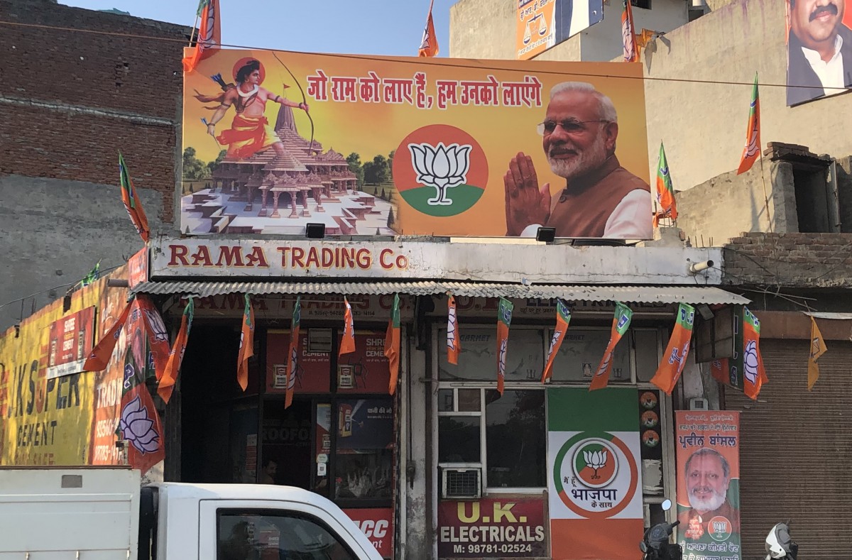 In Ludhiana North, another hopeful seat for the BJP, is a hoarding of the Ram temple that is being built in Ayodhya. The words 'Ram mandir' and ‘Jai Shree Ram’ accompany the picture.