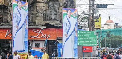 TMC workers were seen arriving at the two terminal stations of Howrah and Sealdah in overcrowded local trains holding party flags, cutouts of Banerjee playing the traditional 'dhaaks' (double sided drums) and even blowing conches.