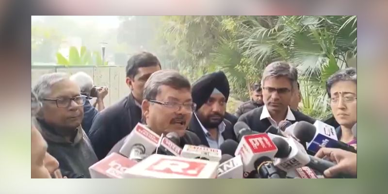 The AAP delegation included Rajya Sabha MP Sandeep Pathak, Delhi minister Atishi and MLA Saurabh Bharadwaj.