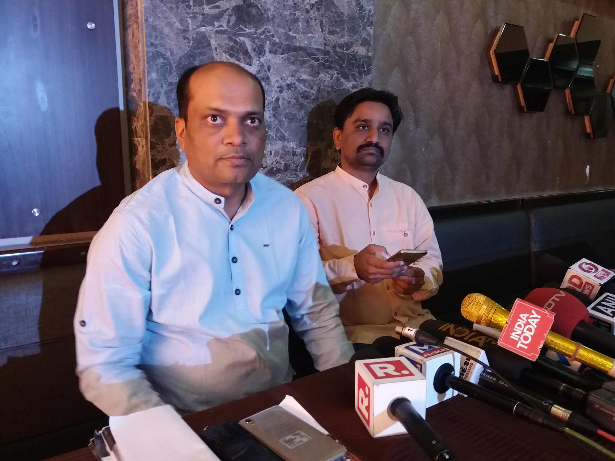 Dinesh Bhambhaniya in a press conference just after the ruckus over Congress's first list. Credit: Damayantee Dhar